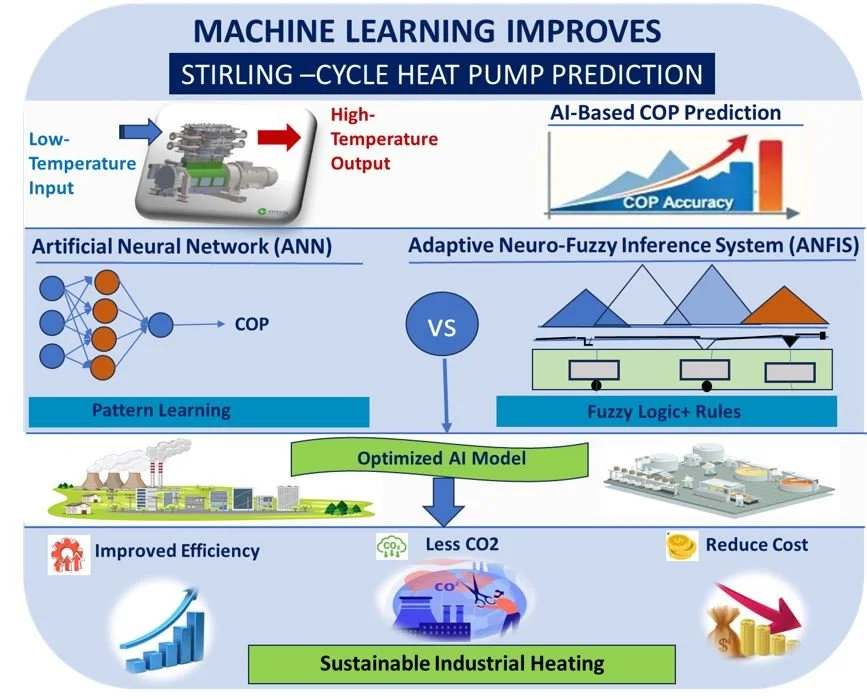While machine learning has been applied to other heat pump technologies, this study addresses a key gap by focusing on Stirling-cycle high-temperature heat pump (HTHP) systems.